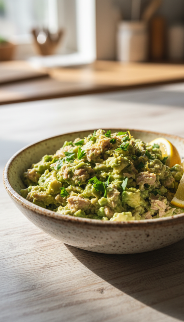 A creamy mix of tuna and ripe avocado with lemon and herbs. Filling, fresh, and ready in under five minutes.