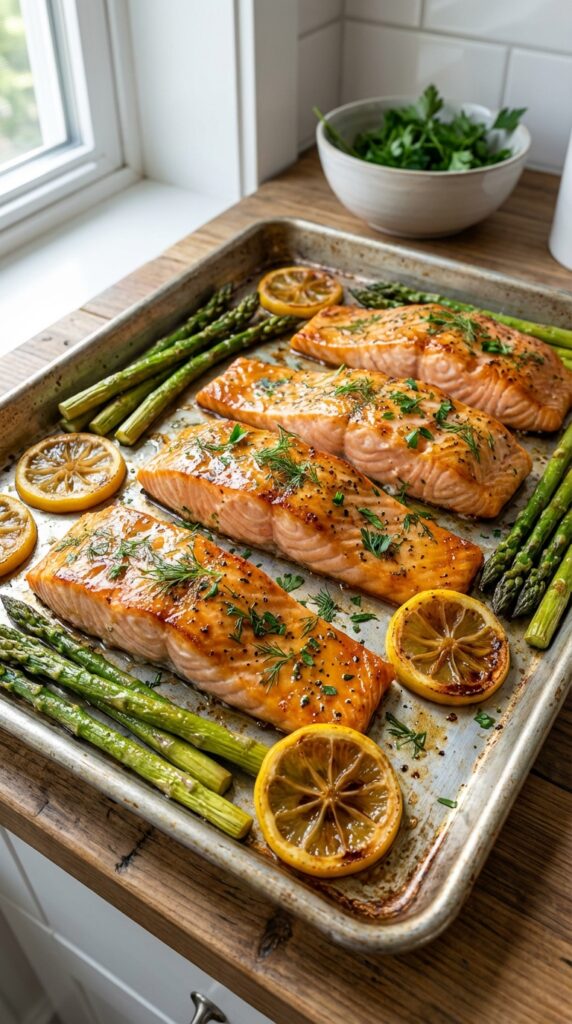 Flaky salmon with fresh lemon and crisp asparagus creates a light yet protein-rich dinner that feels fresh, bright, and satisfying.