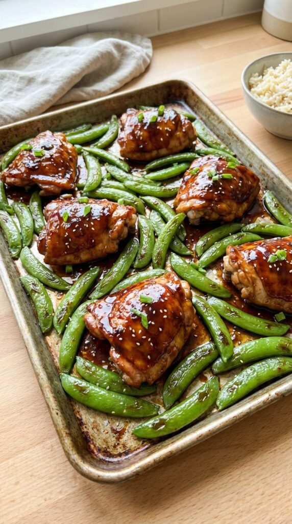 Sweet and savory teriyaki chicken roasted with crisp snap peas delivers bold flavor and high protein in every bite.