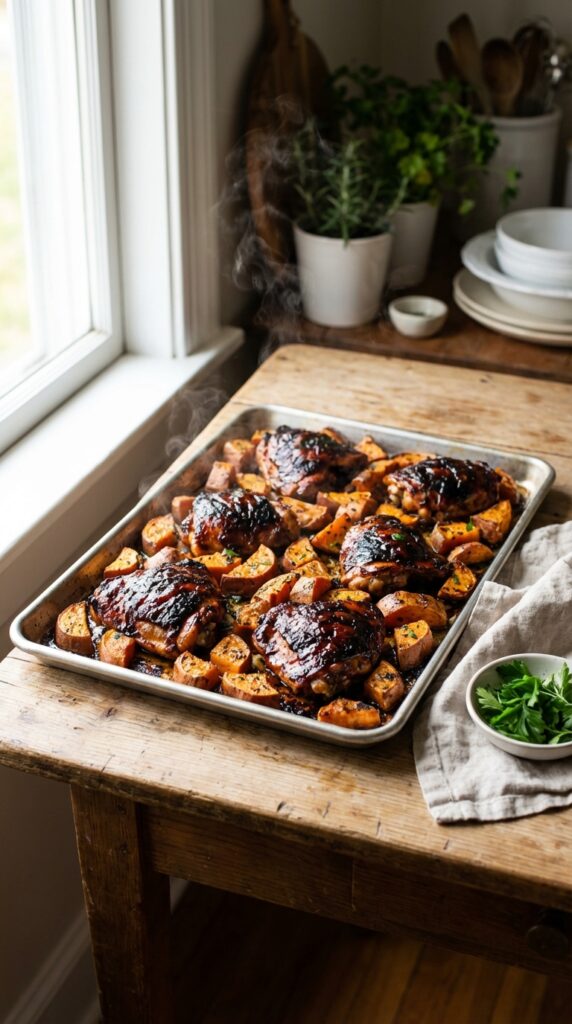 Sweet and smoky BBQ chicken paired with roasted sweet potatoes makes a comforting, high-protein dinner with a perfect balance of flavor and nutrition.