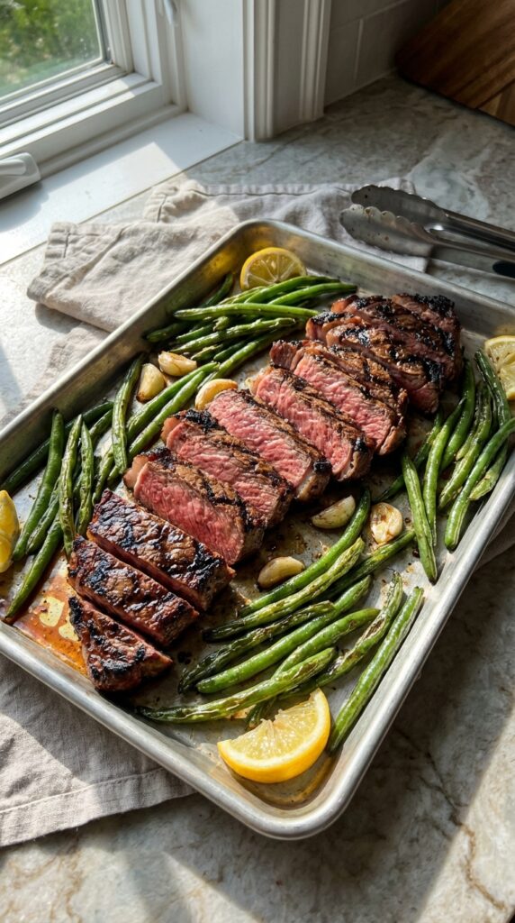 Juicy steak strips roast with crisp green beans for a bold, protein-packed dinner that feels hearty and satisfying.