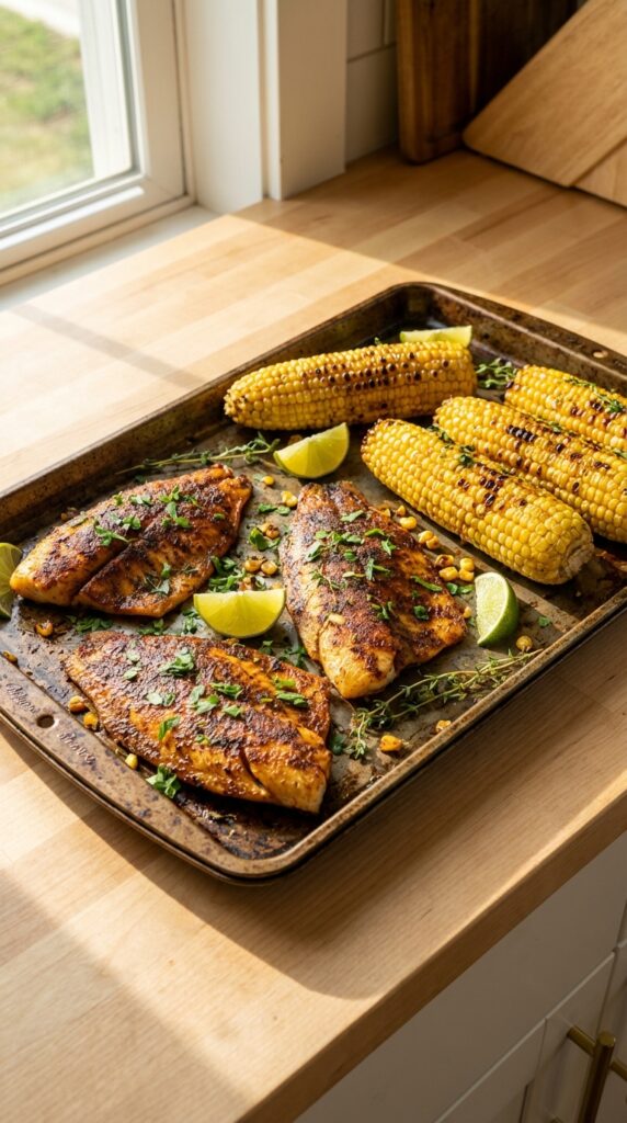 Spicy Cajun tilapia paired with sweet roasted corn makes a flavorful, protein-rich dinner that’s quick and satisfying.