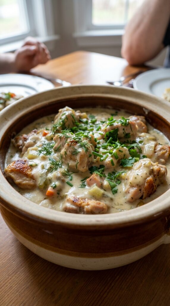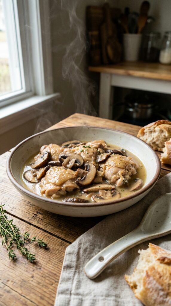 Tender chicken simmered with mushrooms in a savory sauce makes a cozy low carb dinner with deep flavor.