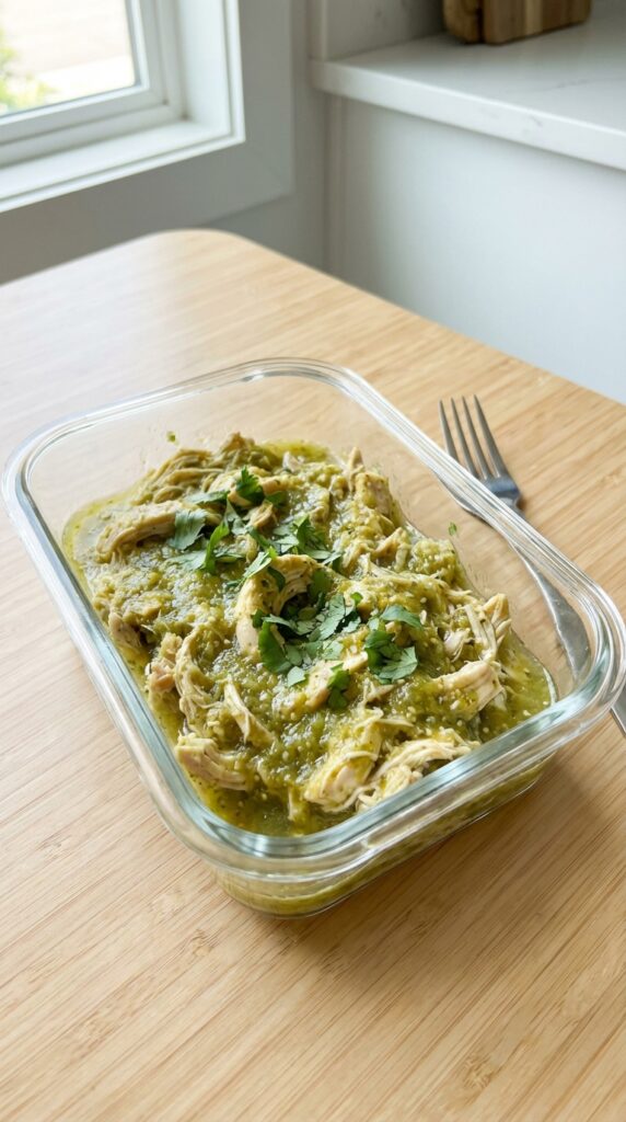 Tangy salsa verde gives this shredded chicken bold flavor while keeping it light and low carb.