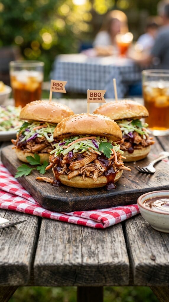 These BBQ chicken sliders are juicy, flavorful, and perfect for feeding a crowd. Tender shredded chicken coated in smoky barbecue sauce pairs beautifully with crunchy coleslaw. Served in soft slider buns, they’re easy to eat, satisfying, and a guaranteed hit at any summer party or cookout.
