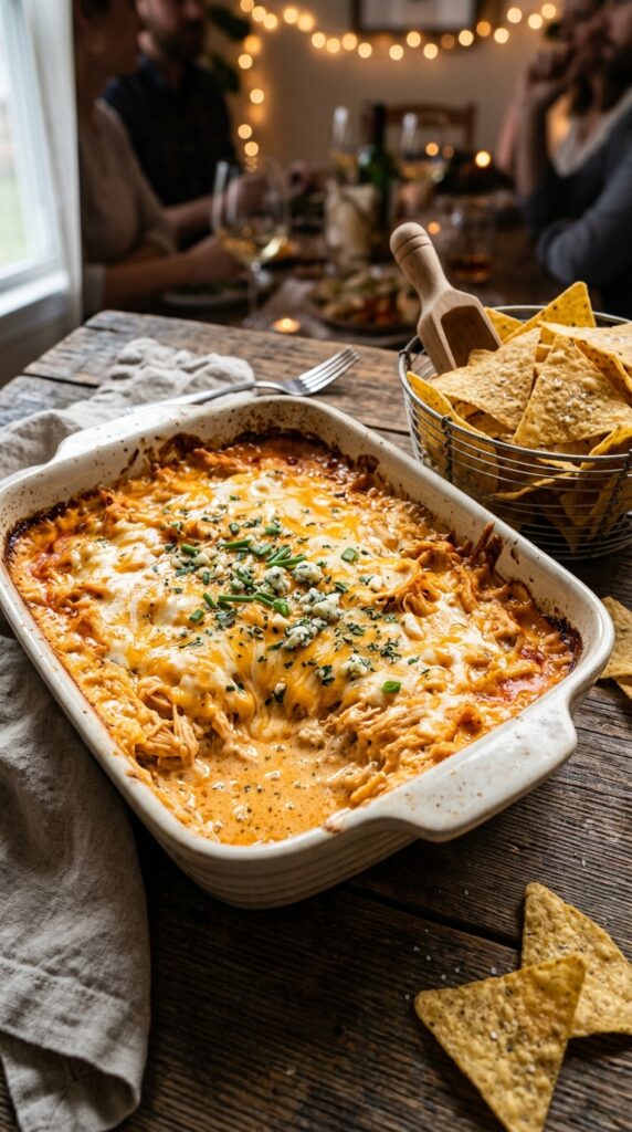 This buffalo chicken dip is creamy, spicy, and packed with bold flavor that keeps everyone coming back for more. Tender shredded chicken is blended with rich cheese and tangy buffalo sauce, then baked until hot and bubbly. Served with crunchy tortilla chips, it’s the ultimate crowd-pleasing appetizer for any party.