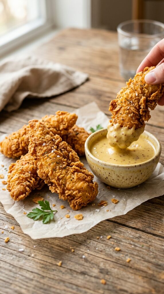 13. Crispy Chicken Tenders with Honey Mustard Dip