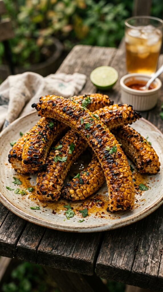 Grilled corn ribs are a fun and flavorful twist on classic corn on the cob. Cut into rib-like strips, they curl as they cook and soak up smoky, buttery flavors. Coated with spicy butter, they’re slightly crispy, juicy, and perfect for outdoor gatherings or summer parties.