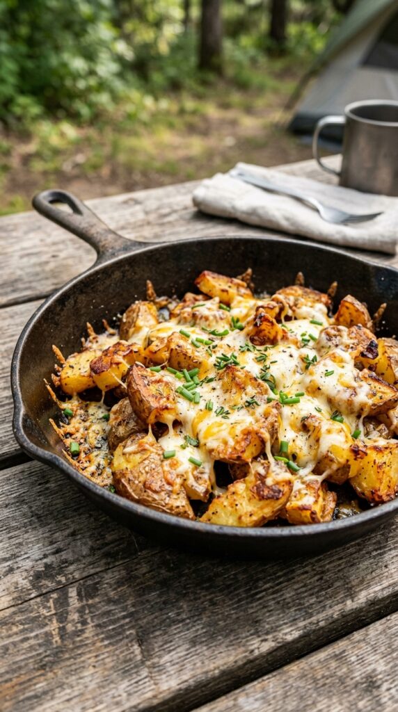 Crispy potatoes cooked in one pan and topped with melted cheese create a warm, comforting meal that’s perfect after a long day outdoors.