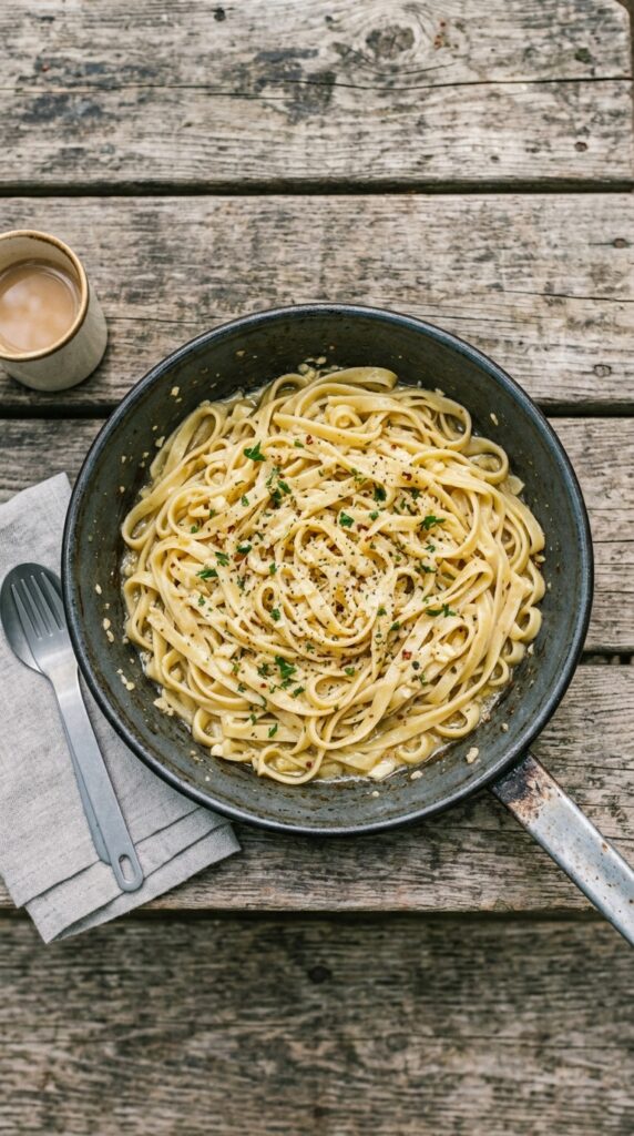 Simple noodles tossed in garlic butter create a rich, comforting dish that’s easy to make and perfect for relaxed camping evenings.