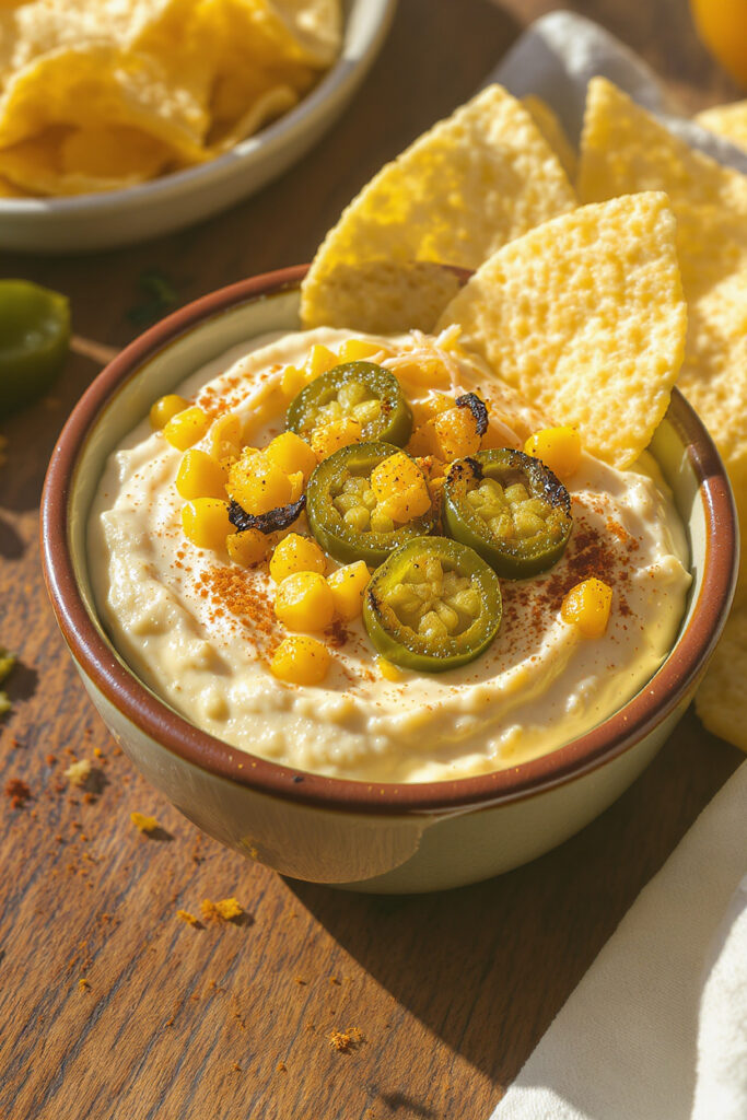 A smoky, spicy dip featuring charred corn and jalapeños, perfect for BBQ season!