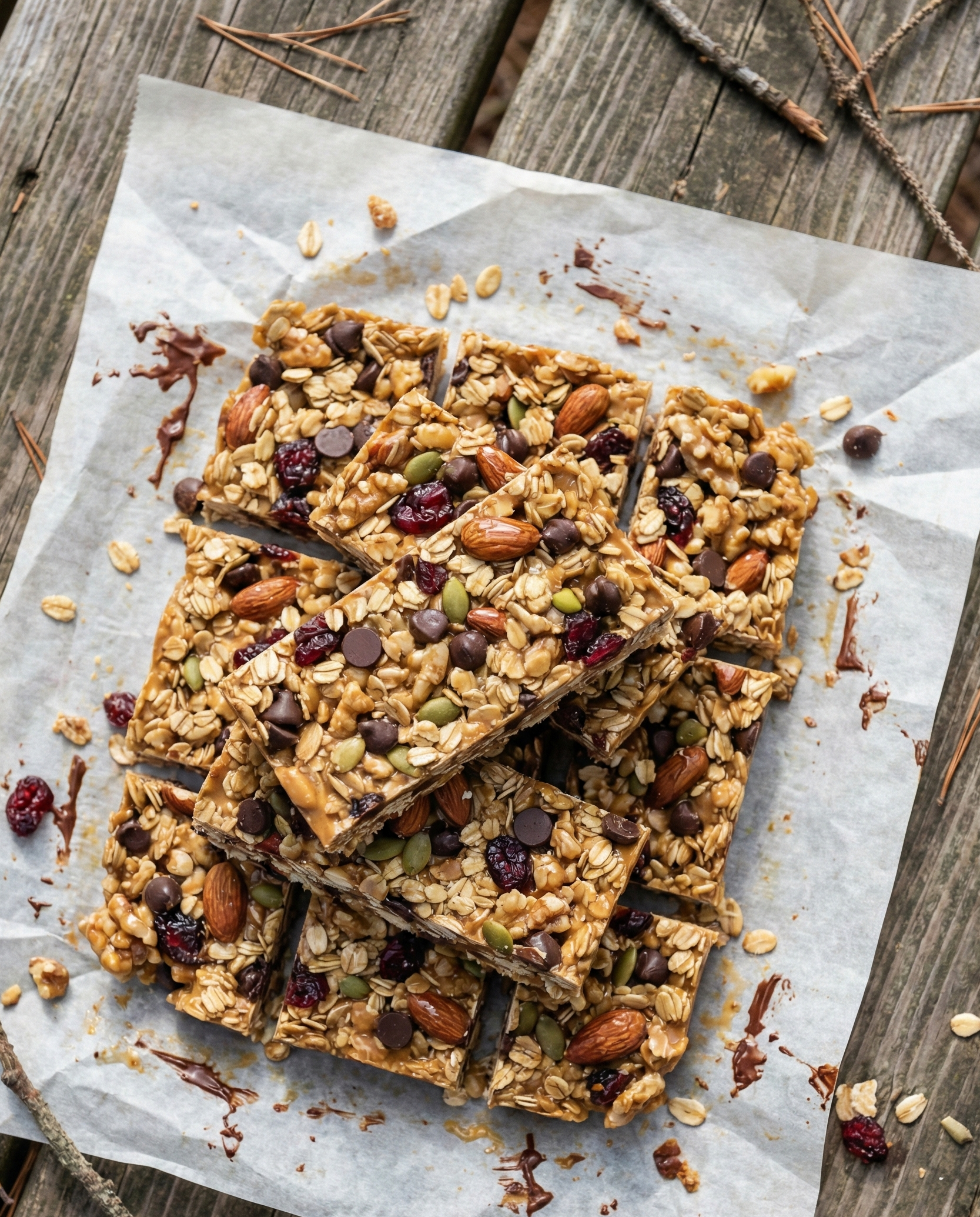 These bars are sweet, salty, and sturdy for travel—peanut butter holds everything together while chocolate and trail mix add crunch and campsite energy.