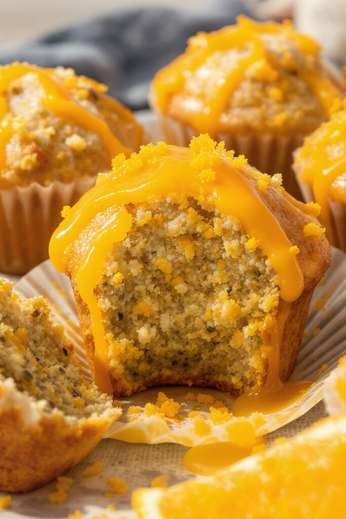 Soft, citrusy muffins with poppy seed crunch and a bright orange glaze. They feel light and sunny—perfect for spring mornings.