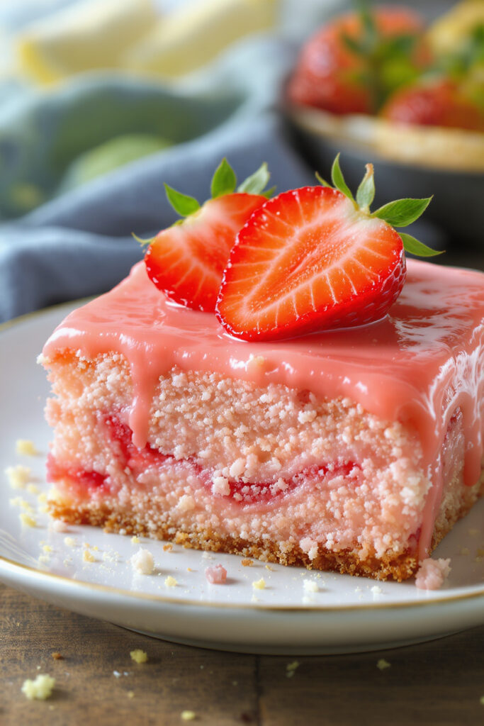 This cake tastes like strawberry lemonade in dessert form—light, fruity, and super crowd-friendly. Great for picnics, birthdays, and spring potlucks.