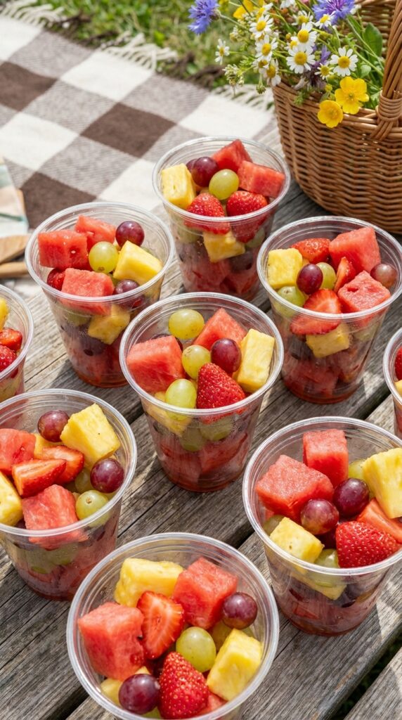 Description: Sweet, juicy, and refreshing, these colorful fruit cups are perfect for hot days and add a naturally sweet touch to your picnic spread.
