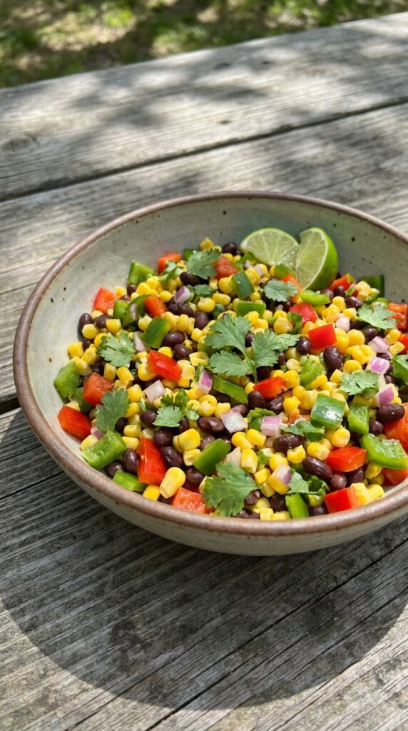 Ingredients: Corn, black beans, bell peppers, lime juice, cilantro