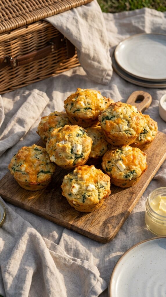 Description: Soft, savory muffins that are easy to pack and eat, offering a delicious combination of greens and cheesy goodness.