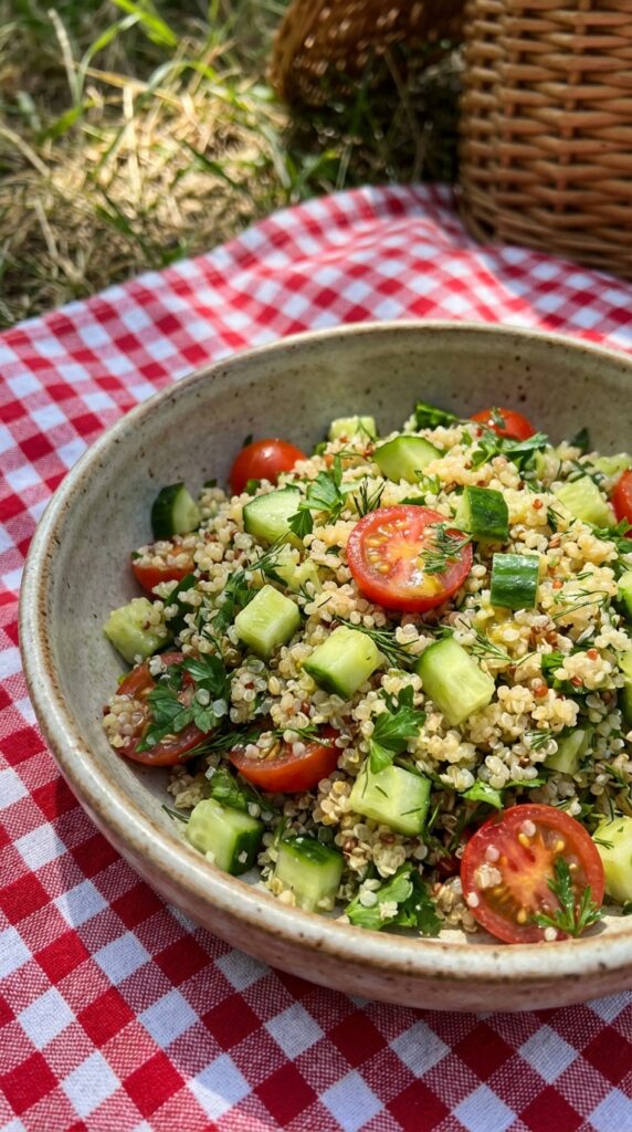 Description: Nutritious and light, this salad is packed with protein and fresh vegetables, making it a perfect picnic companion.
