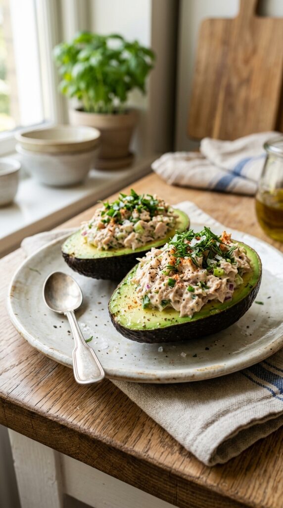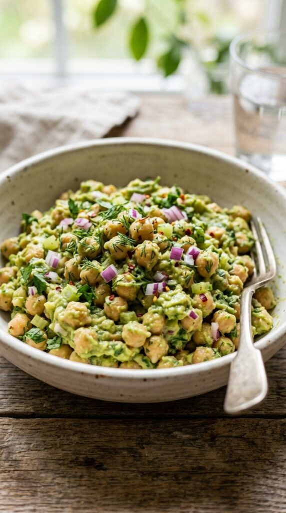 This creamy avocado chickpea salad is a hearty yet refreshing dish packed with plant-based goodness. The mashed avocado creates a rich, creamy texture while chickpeas add protein and substance. It’s quick to prepare, satisfying, and perfect for serving as a side dish or filling for wraps.