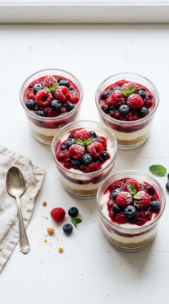 Berry cheesecake no-bake cups are a creamy and refreshing dessert perfect for summer gatherings. Layers of smooth cheesecake filling, fresh berries, and crunchy crumbs create a delicious combination of textures. These easy, no-cook treats are individually portioned, making them ideal for potlucks and stress-free entertaining.