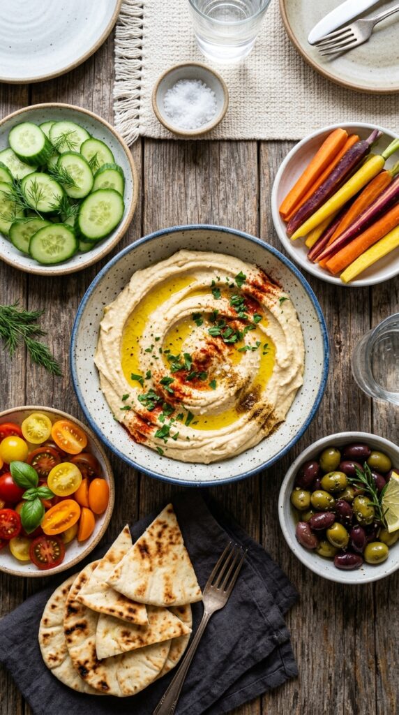 A Mediterranean hummus platter is a vibrant, no-cook dish loaded with colors and textures. Creamy hummus is surrounded by fresh vegetables, olives, and warm pita, making it perfect for sharing. It’s healthy, visually appealing, and incredibly easy to assemble for any summer potluck or gathering.