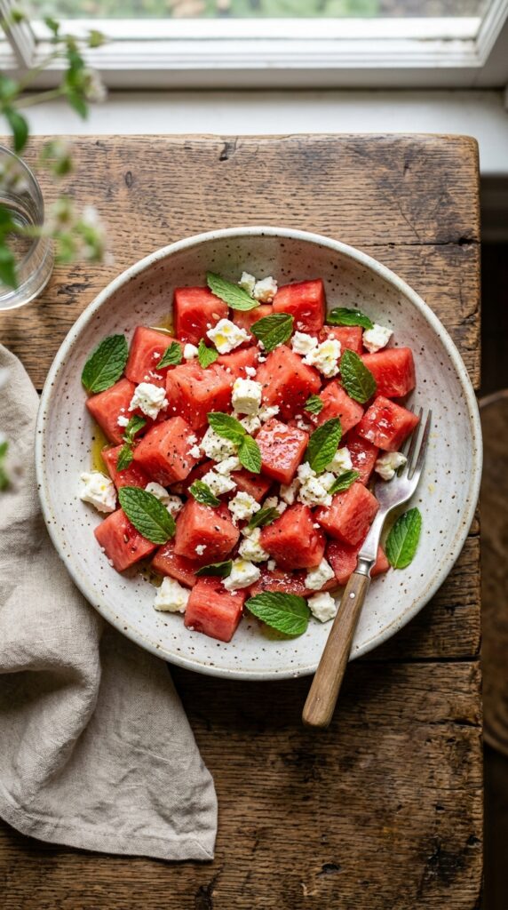 This refreshing watermelon feta salad is the ultimate summer crowd-pleaser. Juicy, sweet watermelon pairs beautifully with salty feta cheese, while fresh mint adds a burst of brightness. It’s light, hydrating, and incredibly easy to prepare, making it a perfect no-cook option for hot weather gatherings and potlucks.