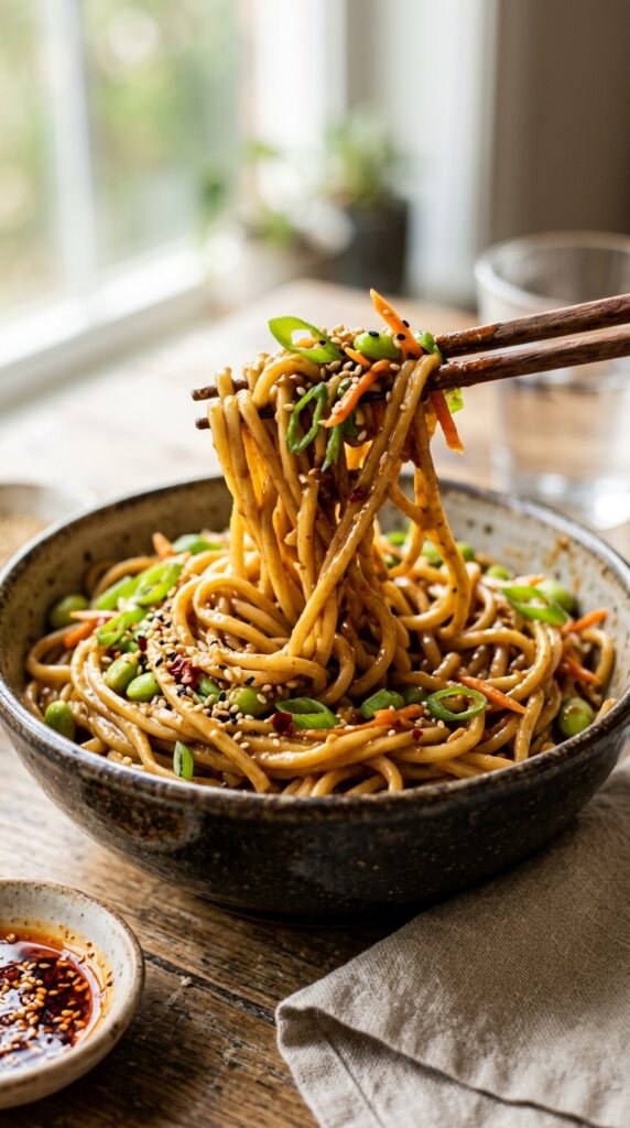 Cold sesame noodle salad is a flavorful and refreshing dish perfect for hot days. Tossed in a rich, nutty sesame dressing, the noodles are combined with crisp vegetables for added crunch. It’s a satisfying no-cook meal when pre-cooked noodles are used, making it ideal for potlucks or quick lunches.