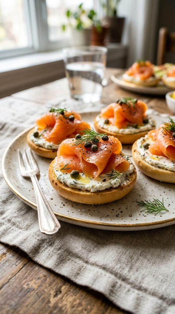 Smoked salmon bagel bites are a flavorful and elegant no-cook appetizer. Creamy cheese, rich smoked salmon, and fresh toppings come together on bite-sized bagel pieces. They’re quick to prepare, visually appealing, and perfect for potlucks or brunch-style gatherings where you want something simple yet impressive.