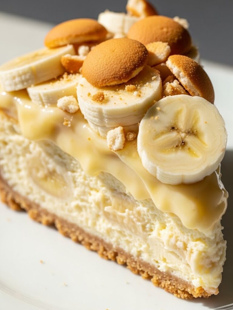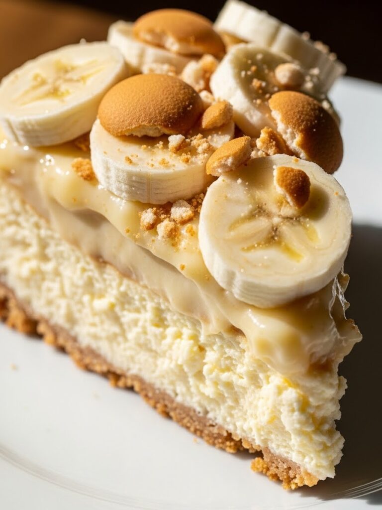 A rich banana-infused cheesecake layered with fresh bananas, creamy pudding, and crisp vanilla wafers. This Banana Pudding Cheesecake delivers the perfect mix of classic Southern flavor and luxurious cheesecake texture.