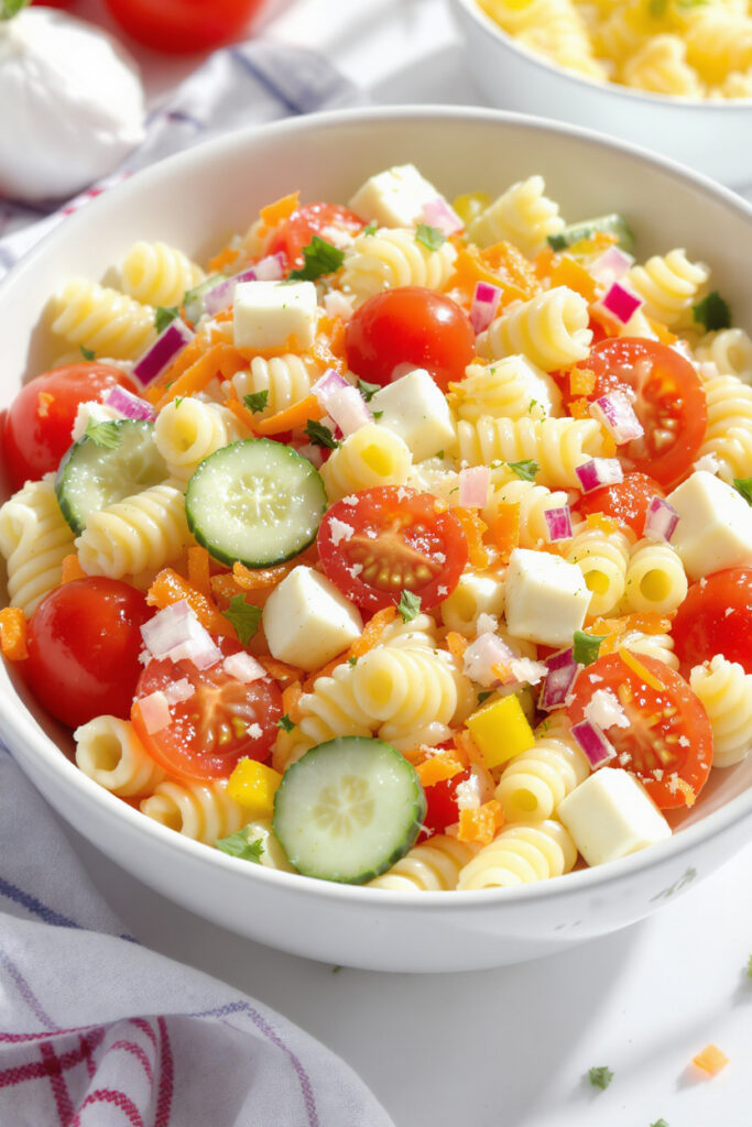 This pasta salad is perfect for 4th of July parties, backyard BBQs, picnics, and summer potlucks. It’s a great make-ahead side dish that stays fresh and flavorful in the fridge.