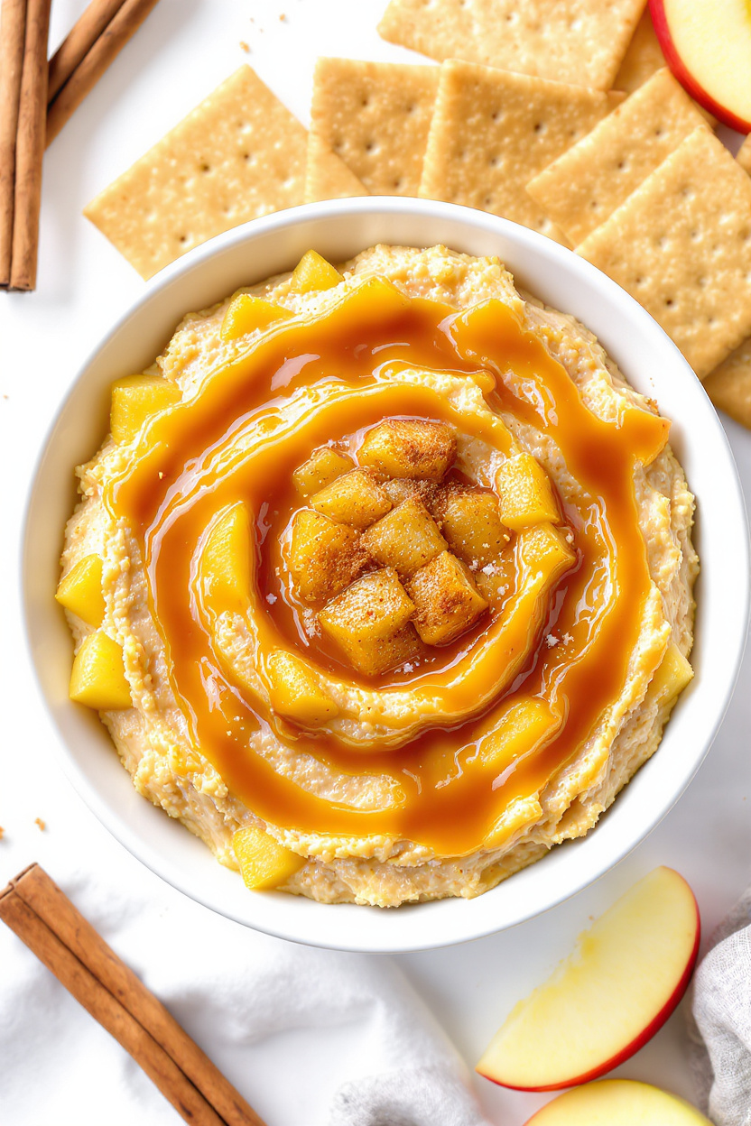 Everything you love about warm, gooey apple pie — turned into a creamy, dreamy dip! This Salted Caramel Apple Pie Dip combines tender cinnamon apples, rich caramel sauce, and a touch of sea salt for the ultimate cozy, shareable fall treat.