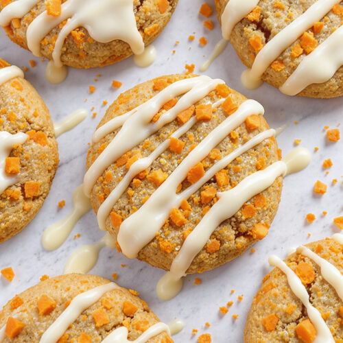 Festive carrot cake cookies with warm cinnamon, shredded carrots, and a tangy cream-cheese glaze taste like carrot cake in handheld form. They bake up soft and chewy with lightly crisp edges, and they’re perfect for Easter, and spring parties
